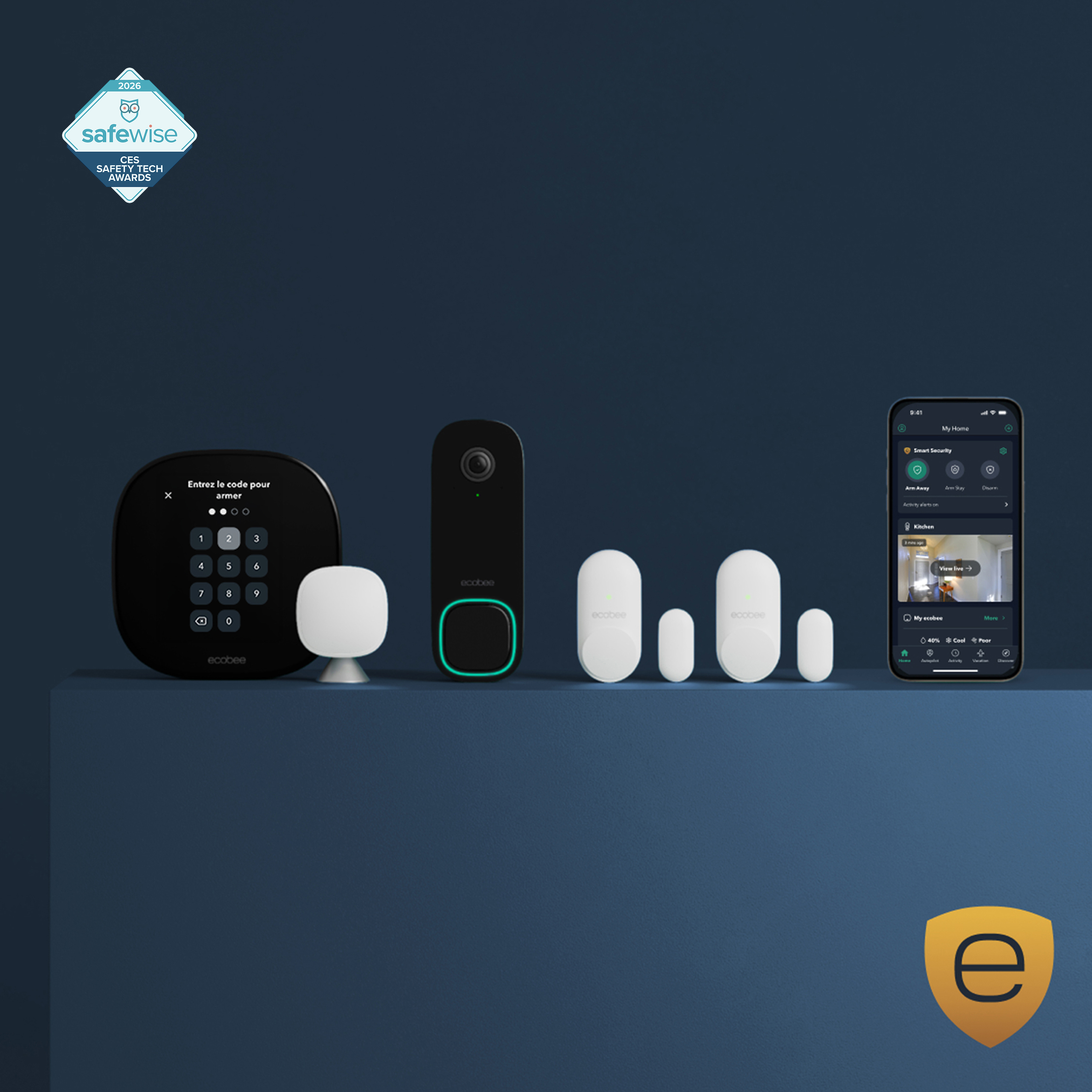 Sécurité intelligente Ecobee rassemble votre thermostat, votre sonnette, vos caméras et vos SmartSensors dans un seul système connecté. Quand quelque chose se passe, vos appareils réagissent ensemble: les SmartSensors détectent l'activité, les caméras capturent ce qui se passe et votre thermostat agit comme un hub de sécurité. Vous recevez des alertes instantanées, des notifications riches avec contexte vidéo et un contrôle simple à partir d'une seule application, pour que votre domicile reste protégé et efficace.